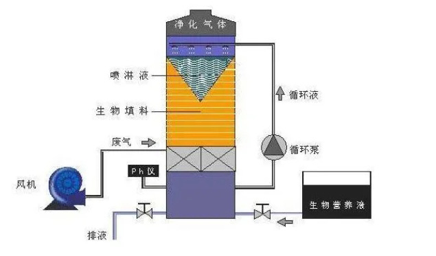 生物滴濾法:結合了生物過濾和噴淋的優點,廢氣在塔內與生物濾料接觸并降解。這種方法可以有效地去除多種VOCs,同時還可以去除顆粒物和臭味。